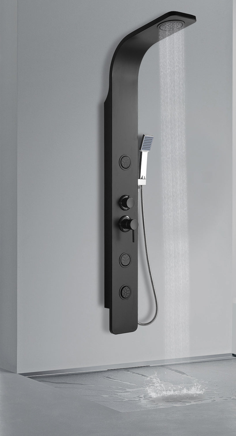 A coluna possui: Chuveiro, cascata, torneira, pontos de hidromassagem vertical