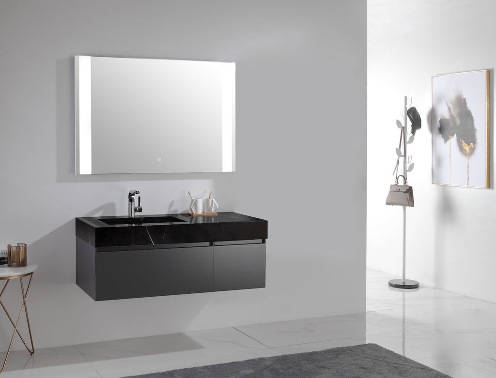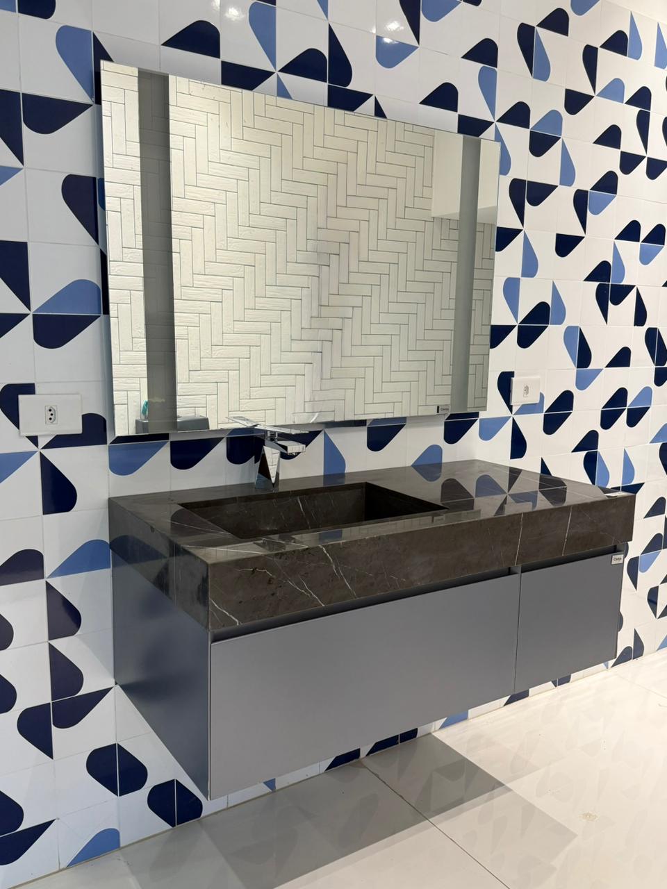 O kit lavatório é um produto compacto de design moderno e minimalista, projetado para pequenos espaços, perfeito para fazer parte do seu banheiro ou lavabo.  O espelho é sensível ao toque com iluminação em LED, e gaveta com “push to open” (fecho-toque), que permite a abertura de portas e gavetas apenas com um toque, dispensando o uso dos tradicionais puxadores.