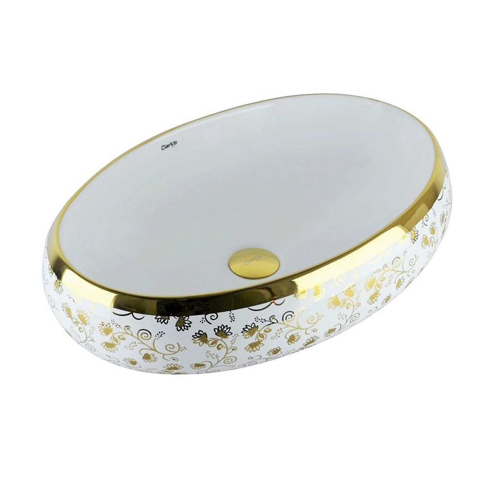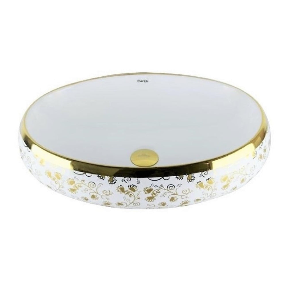 Cuba de Cerâmica Branca com Detalhes Dourado